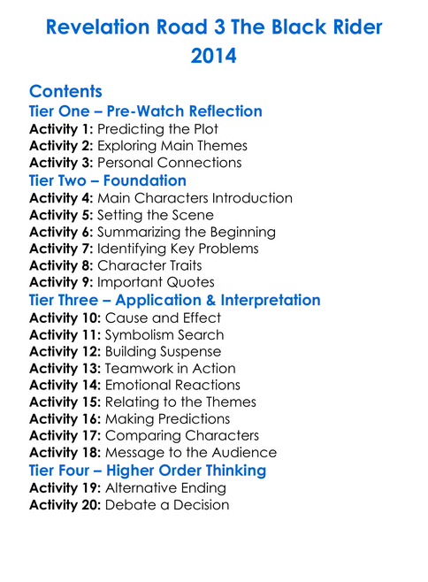 Revelation Road 3 The Black Rider 2014 Worksheet Activity Booklet