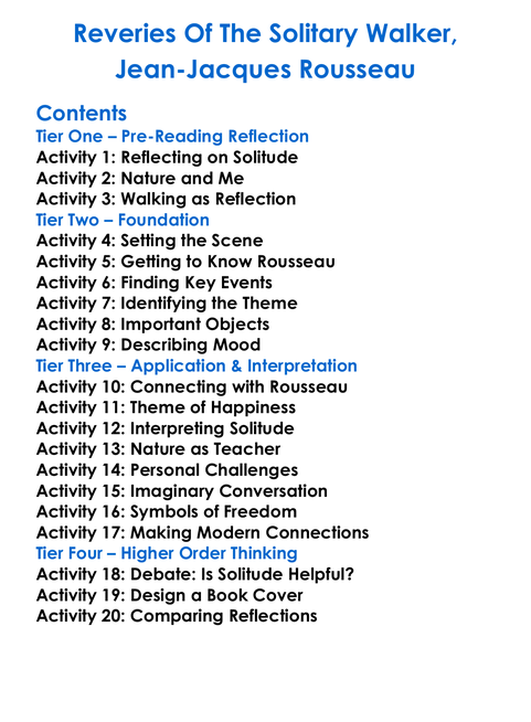 Reveries Of The Solitary Walker Jean-Jacques Rousseau Worksheet Activity Booklet