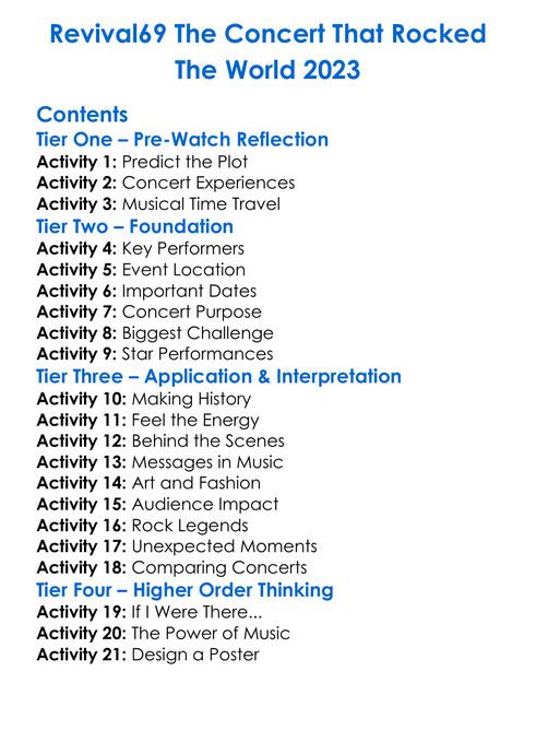 Revival69 The Concert That Rocked The World 2023 Worksheet Activity Booklet