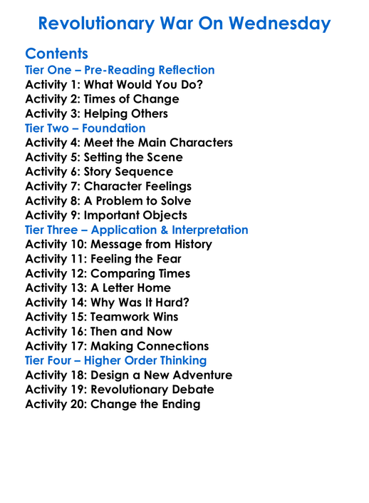 Revolutionary War On Wednesday Worksheet Activity Booklet