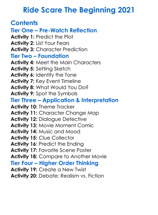 Ride Scare The Beginning 2021 Worksheet Activity Booklet