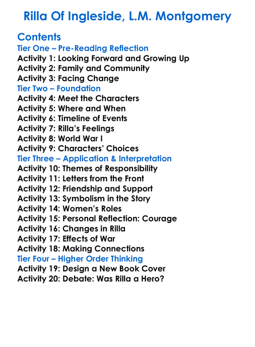 Rilla Of Ingleside Lm Montgomery Worksheet Activity Booklet