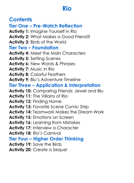 Rio Worksheet Activity Booklet