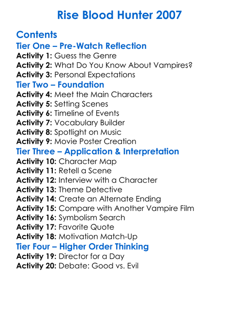 Rise Blood Hunter 2007 Worksheet Activity Booklet