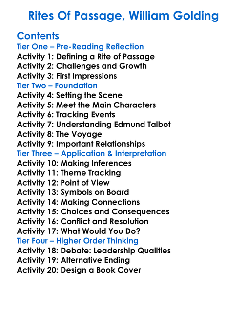 Rites Of Passage William Golding Worksheet Activity Booklet