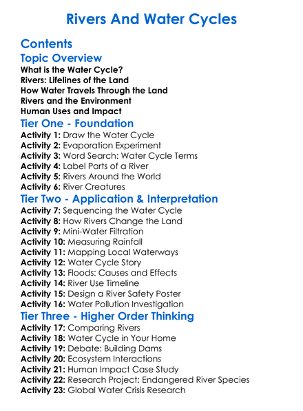 Rivers And Water Cycles Worksheet Activity Booklet