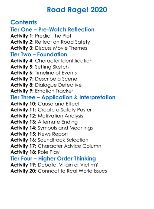 Road Rage 2020 Worksheet Activity Booklet