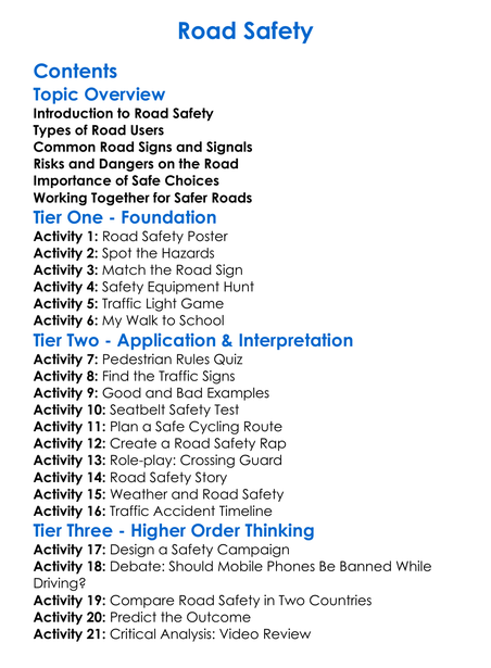 Road Safety Worksheet Activity Booklet