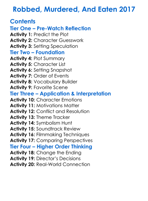 Robbed Murdered And Eaten 2017 Worksheet Activity Booklet