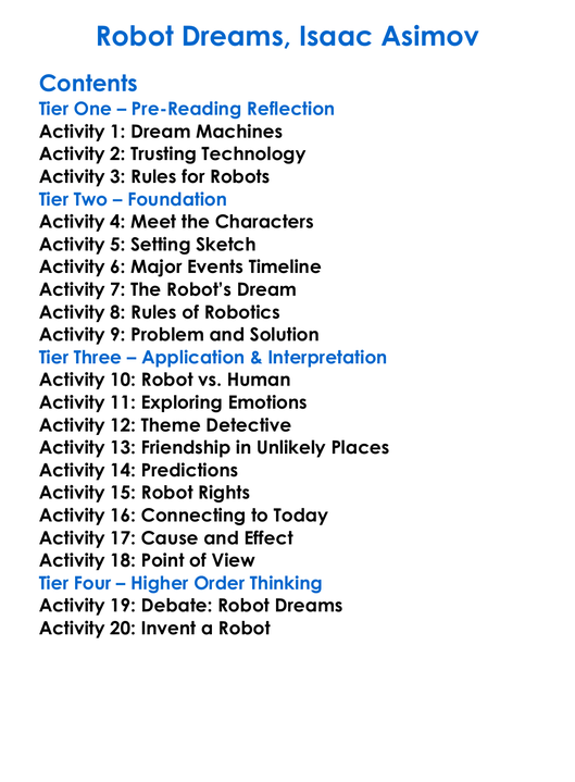 Robot Dreams Isaac Asimov Worksheet Activity Booklet