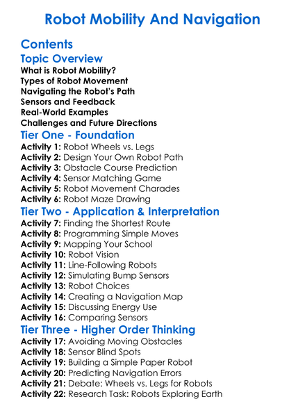Robot Mobility And Navigation Worksheet Activity Booklet