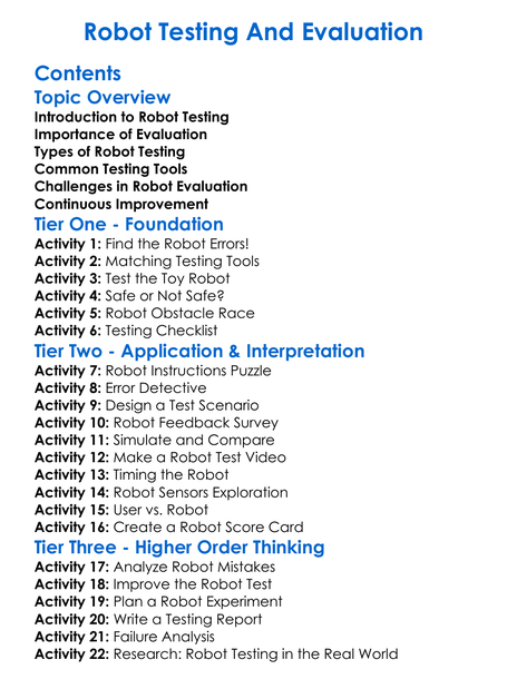 Robot Testing And Evaluation Worksheet Activity Booklet