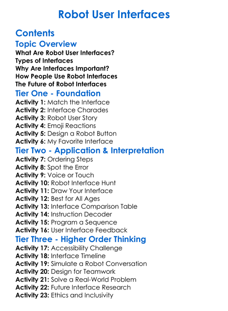 Robot User Interfaces Worksheet Activity Booklet