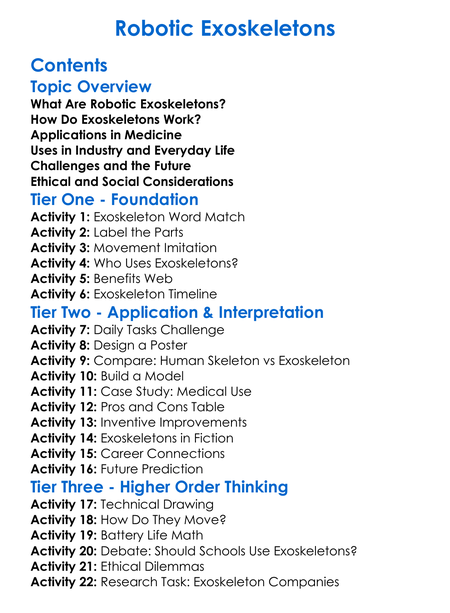 Robotic Exoskeletons Worksheet Activity Booklet