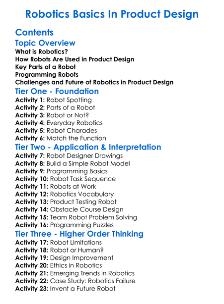 Robotics Basics In Product Design Worksheet Activity Booklet