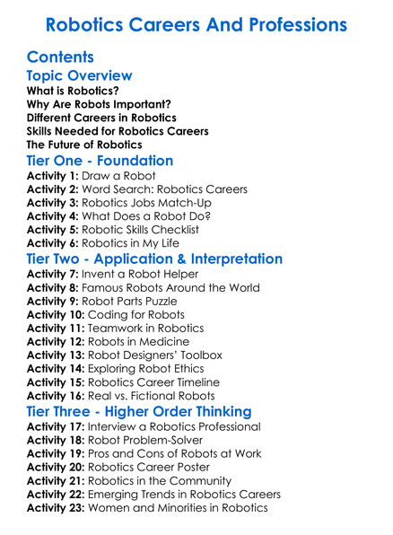 Robotics Careers And Professions Worksheet Activity Booklet