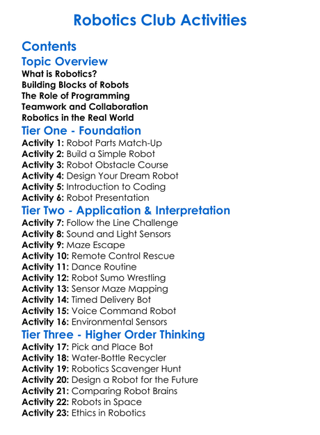 Robotics Club Activities Worksheet Activity Booklet