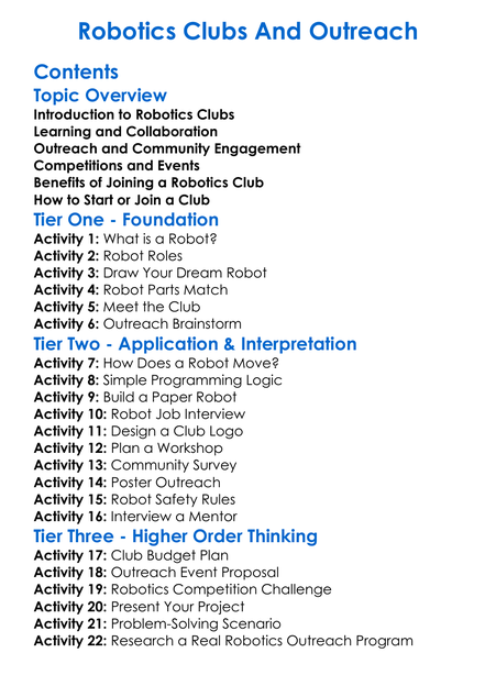 Robotics Clubs And Outreach Worksheet Activity Booklet