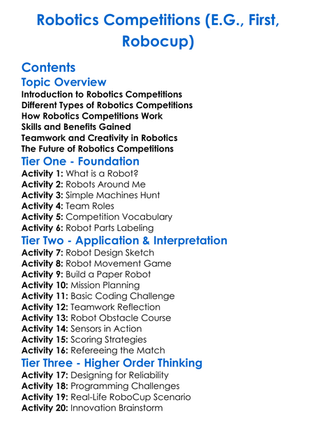 Robotics Competitions Eg First Robocup Worksheet Activity Booklet