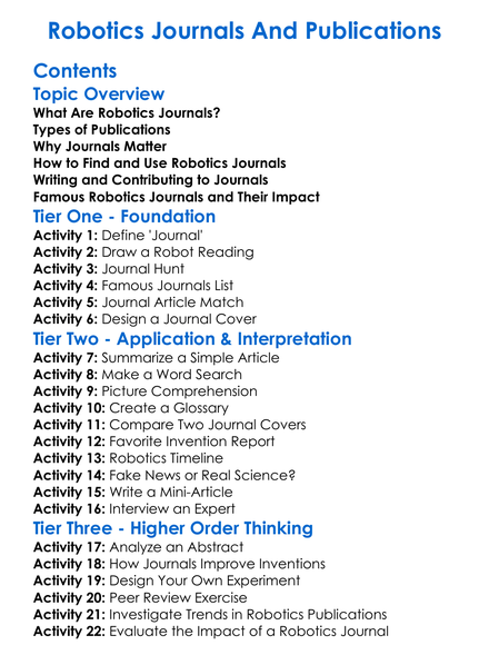 Robotics Journals And Publications Worksheet Activity Booklet
