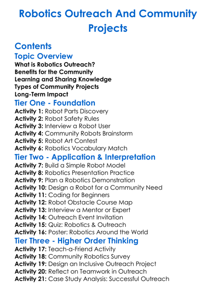 Robotics Outreach And Community Projects Worksheet Activity Booklet