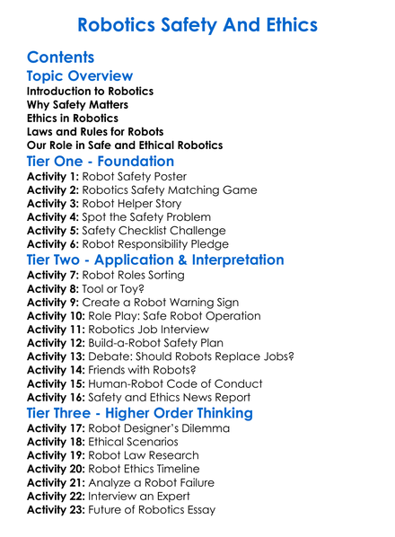 Robotics Safety And Ethics Worksheet Activity Booklet