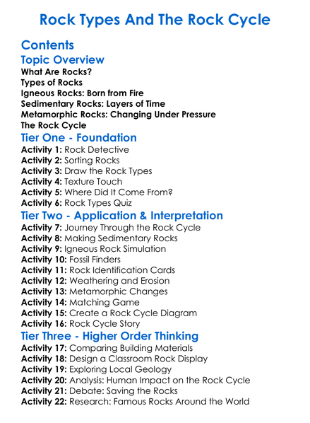 Rock Types And The Rock Cycle Worksheet Activity Booklet