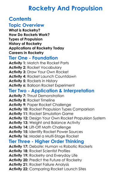 Rocketry And Propulsion Worksheet Activity Booklet