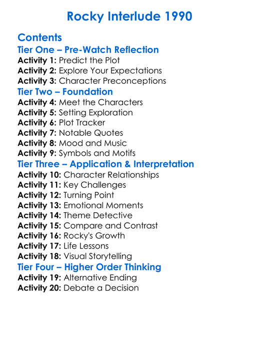 Rocky Interlude 1990 Worksheet Activity Booklet