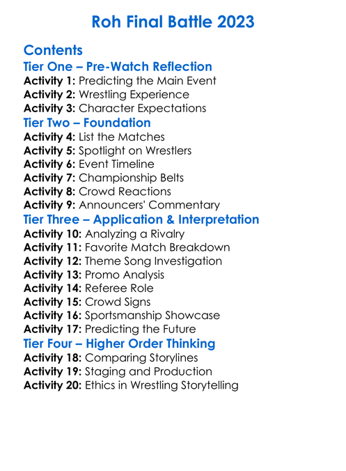 Roh Final Battle 2023 Worksheet Activity Booklet