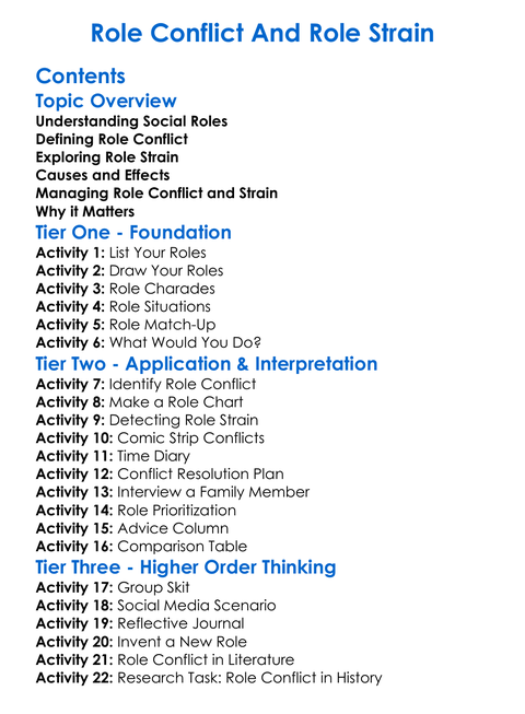 Role Conflict And Role Strain Worksheet Activity Booklet
