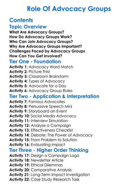 Role Of Advocacy Groups Worksheet Activity Booklet