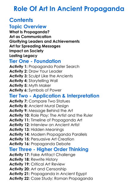 Role Of Art In Ancient Propaganda Worksheet Activity Booklet