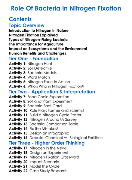 Role Of Bacteria In Nitrogen Fixation Worksheet Activity Booklet