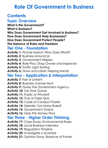 Role Of Government In Business Worksheet Activity Booklet