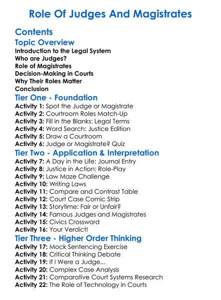 Role Of Judges And Magistrates Worksheet Activity Booklet