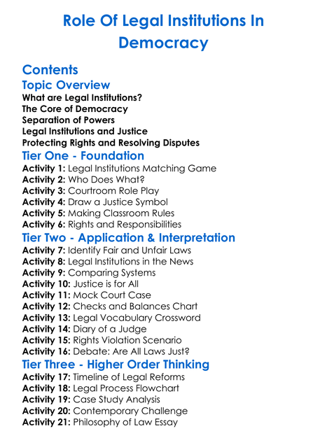 Role Of Legal Institutions In Democracy Worksheet Activity Booklet
