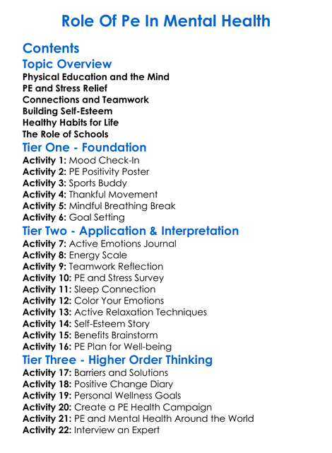 Role Of Pe In Mental Health Worksheet Activity Booklet