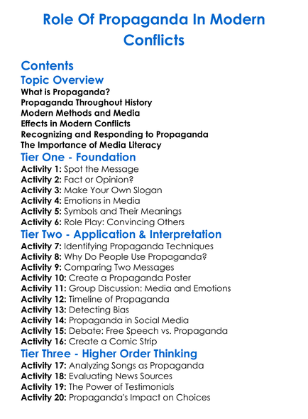 Role Of Propaganda In Modern Conflicts Worksheet Activity Booklet