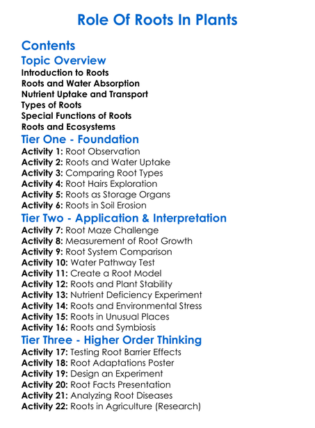 Role Of Roots In Plants Worksheet Activity Booklet
