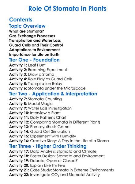 Role Of Stomata In Plants Worksheet Activity Booklet
