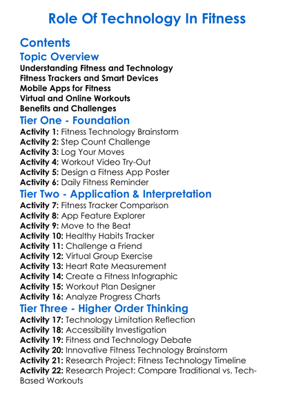 Role Of Technology In Fitness Worksheet Activity Booklet