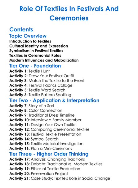 Role Of Textiles In Festivals And Ceremonies Worksheet Activity Booklet