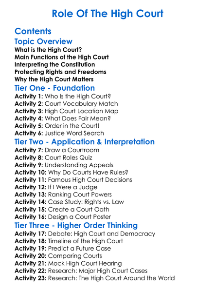 Role Of The High Court Worksheet Activity Booklet