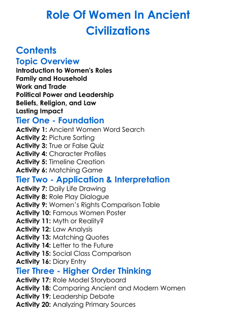 Role Of Women In Ancient Civilizations Worksheet Activity Booklet