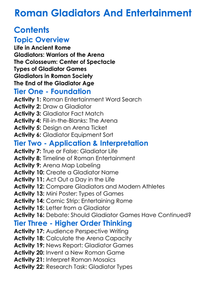 Roman Gladiators And Entertainment Worksheet Activity Booklet