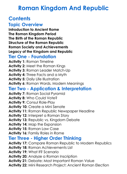 Roman Kingdom And Republic Worksheet Activity Booklet