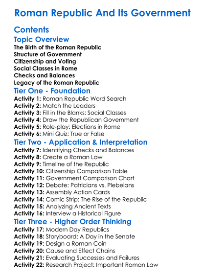 Roman Republic And Its Government Worksheet Activity Booklet