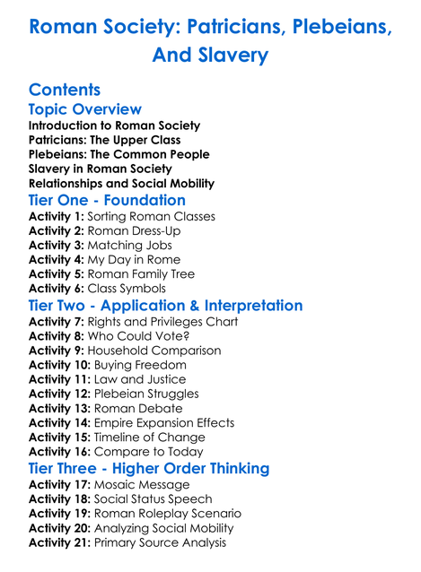 Roman Society Patricians Plebeians And Slavery Worksheet Activity Booklet