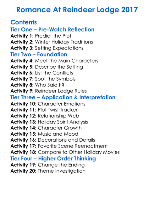 Romance At Reindeer Lodge 2017 Worksheet Activity Booklet
